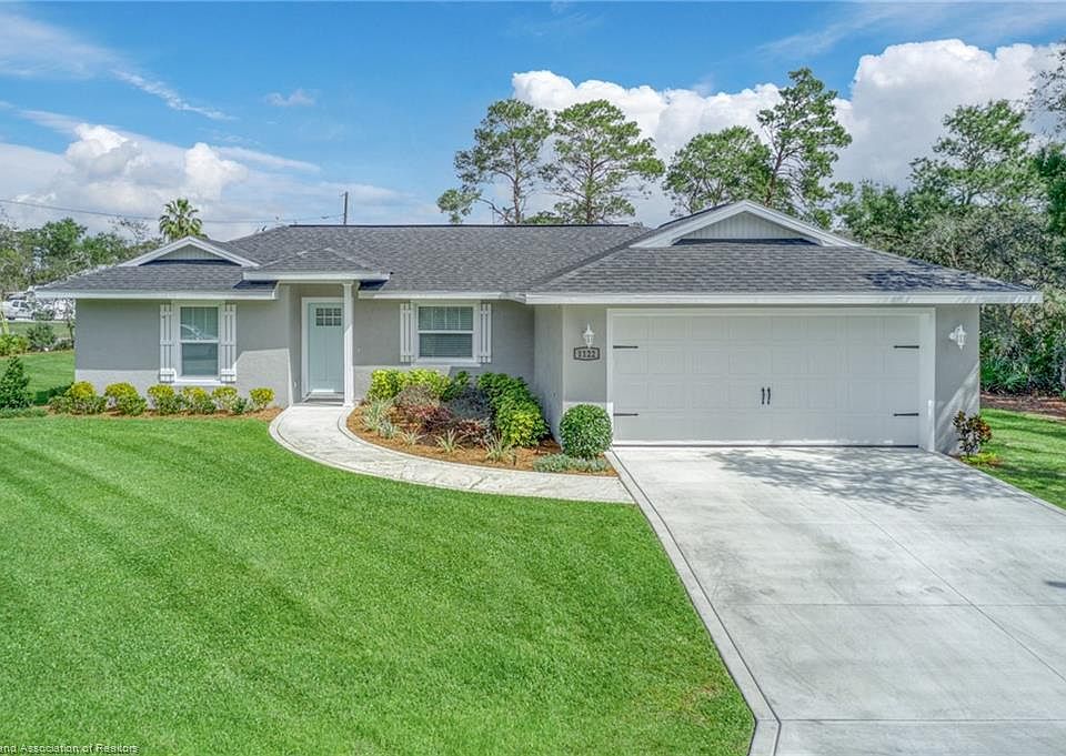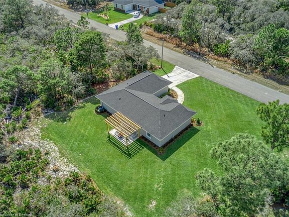 This beautiful home shows like model has all the upgrades along with a nice open floorplan. It is move in ready and is 2 years new. You will love the modern farmhouse appeal. Step into the great room from the front entry. The living room is separated from the kitchen by an island which is ideal for casual meals. No carpet in this home - the flooring throughout is laminate wood and the wall color throughout is Sherwin Williams Sea Salt. The kitchen has white cabinets with soft close, granite counters with glass backsplash and stainless steel appliance. The master bedroom is a generous size, with a walk-in closet. The master bathroom has a walk-in shower with glass enclosure. A barn door gives privacy to the secondary bedrooms. Both bedrooms share a larger hall/guest bathroom. Sliding glass doors open from the dining room to a patio with a pergola. Sit here and enjoy a partial view of Lake Rachael across the street. You will love the professional landscaping. The large corner lot is fully irrigated with a natural buffers around the perimeter for privacy. The house is on city water but also has a whole house water system. Another upgrade is whole house surge protection. Window treatments are cordless blinds.