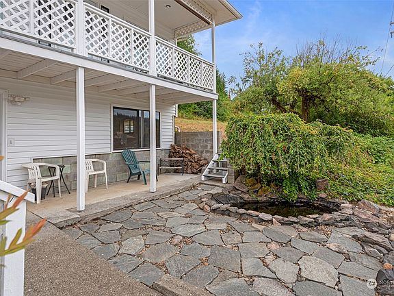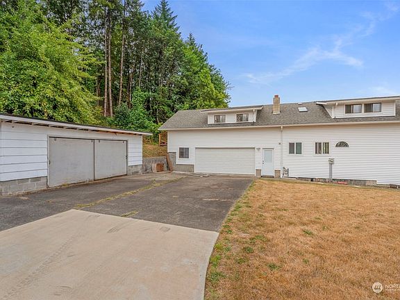 Charming home built into the hill, with ground level entrances on every floor. Clean and carefully maintained. Features include open floor plan, built-ins, primary bathroom remodel, upper level laundry, extensive storage space, oversized 2 car garage, and large garden shed. Two-year-old siding with sound-proofing. Multi-generational living or potential apartment in basement, complete w/ separate entrance. Scenic view and half acre property with mature landscaping, apple trees, and plenty of space. Private, but close to amenities- 10 min. from I-5.