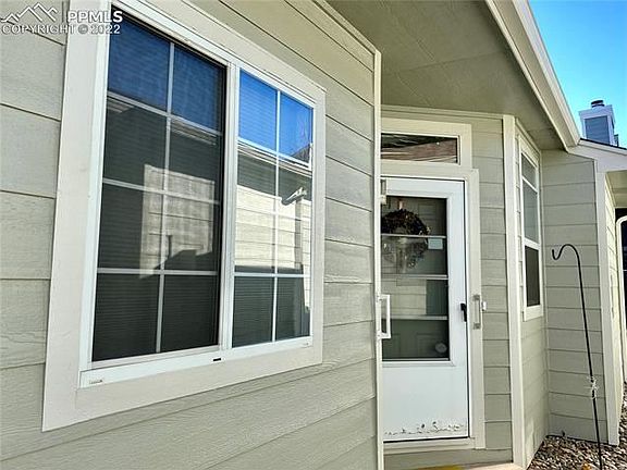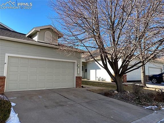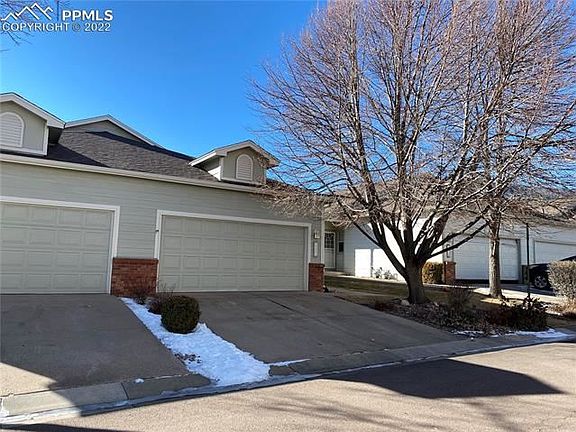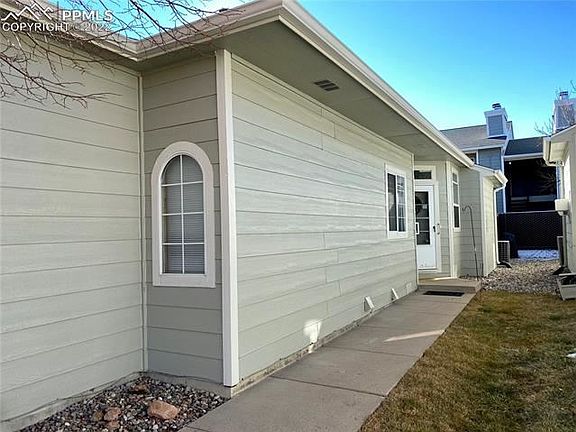Welcome home! This duplex-style ranch home is located in a well maintained gated community. The open concept, vaulted ceilings and skylights add to the welcoming brightness of the home! Kitchen has granite counter tops, breakfast bar and attached dining area. Beautiful wood laminate floors! OVERSIZED master bedroom has a separate sitting area/office with built in shelving. Walk to grocery, dining and Cheyenne Meadows park. Close to downtown, the Broadmoor, Ft. Carson and east access to 1-25. HOA includes water, sewer, exterior maintenance and snow removal. This well maintained house can be easily updated to add your personal style!
