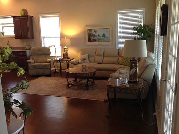 This elegant upscale home located in a wonderful neighborhood features a custom designed bright and open floor plan the gourmet kitchen features granite counters and beautiful cabinetry stainless steel appliances and gas range oversize island with breakfast bar opens up to a spacious family room with fireplace hardwood and tile floors the luxurious master suite with a large walk-in closet and a relaxing garden tub 12 foot ceilings and fans through out . 2 car garage, attic, lanai