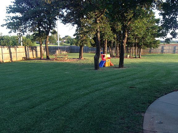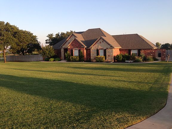 Make Offer! Beautiful "Dallas" style home on desirable 1 acre corner tract in the Songbird Estates cul-de-sac, just across the street from Blanchard High School. This home offers a 3 car attached garage, privacy fenced back yard and has room for RV parking in the back of shop. A recent addition is the underground shelter, and a 30X50X15 insulated shop with new LED lighting, used for batting cage practice. The shops overhead door is 10X12. This house features an open floor plan, with split bedroom design, gas log fire place, large utility room, jetted tub, variable ceiling heights, wired for surround sound and home security. This home is on private water well and just had private septic pumped out in 2016.