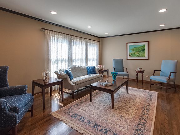 Gorgeous colonial style home with 4 bedrooms and 2.1/2 bathrooms in a great location in Deerfield. It also features hardwood floors throughout, formal living room and dining room. Eat-in kitchen looking over the peaceful backyard is equipped with stainless steel appliances and table space. Large master bedroom with full master bath. Spacious finished basement with playroom. Windows and roof were replaced in 2009. There is also tons of storage space in the basement, attic, and 2.5 car garage. Beautiful and well-maintained backyard including an underground sprinkler system is your own private sanctuary! There is a charming patio and deck, brick fire pit, and a small koi pond with a gently rolling waterfall. Close to downtown, Metra station, library, schools, parks, and shopping. AWARD WINNING SCHOOL DISTRICTS.