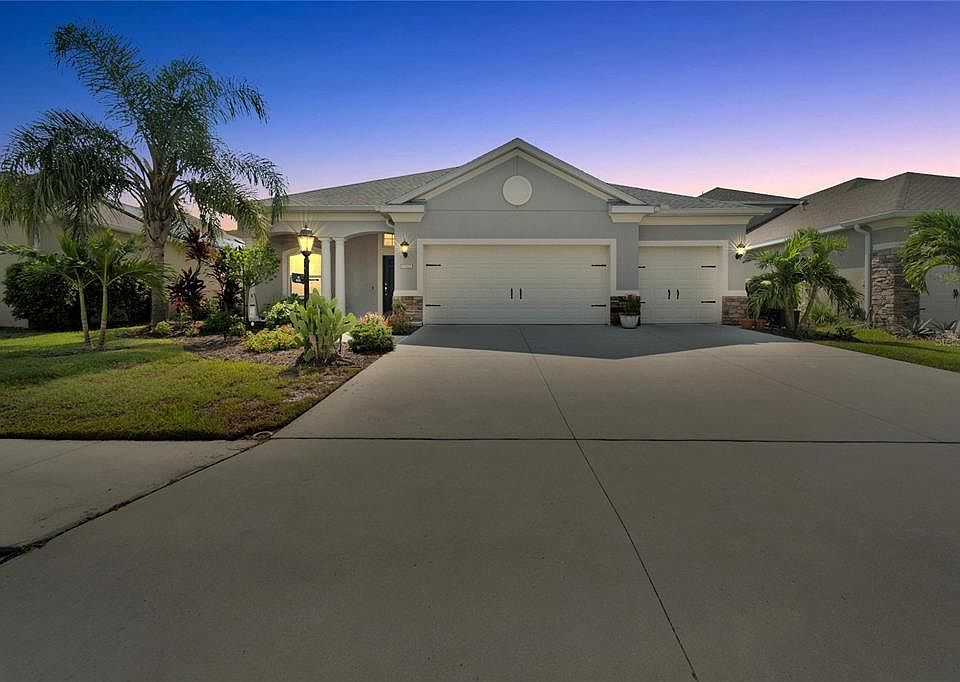 This gorgeous POOL home in the gated community of Rivers Reach is a MUST HAVE! This home features over 9’ ceilings and a large open floor plan. As you enter through the foyer, you’ll find a separate den/formal living area AND a formal dining space. The Great Room features a coffered, tray ceiling and a pocketing 4 panel sliding glass door leading out to your own pool/spa Oasis area! Other features include crown molding in some rooms, plank tile flooring, upgraded appliances, 42” tall kitchen cabinets and a closet pantry. The master suite features 2 walk- in closets and a beautiful master bath with dual sinks in taller vanities along with a fully tiled walk-in shower. You also have an additional Den/Office at the back of this home with a ½ bath that includes a door leading out to the pool area. Leaving the kitchen, you come to the laundry room and 2 guest rooms that share a full 2nd bathroom. This home has a 3-car garage with storage shelves and ladder access to a partially floored attic. And now for the Coup de grace: YOUR very own beautiful, screen enclosed saltwater HEATED POOL with a sun shelf and hot tub for relaxing, surrounded by a large deck area that is partially under cover. The pool and yard include beautiful Bluetooth controlled lighting for nighttime enjoyment. All pool functions are Wi-Fi controlled for ease of use. Upgrades to this home include a fully fenced back yard, irrigation misting system, Culligan water softener, UV light in AC, 7 ceiling fans, tinted rear glass and extra shelving in closets and garage. The River Reach community is a place where you can relax and enjoy tranquil nature preserves, walking trails, a kayak/canoe launch in the Manatee River, a community pool/spa area, playground and beautiful landscaping.