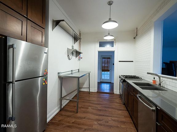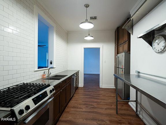 This beautiful large home is on a large, corner lot just minutes from downtown, UL, and the Saint Streets, Oaklawn Park, Myrtle Elementary, and is move in ready. It has a split open floor plan with 9+ft ceilings, large rooms, beautiful natural light, chefs kitchen including gas stove, dishwasher, and refrigerator. This home is perfect for entertaining. Updates include new water resistant laminate flooring throughout the rooms, custom tile bathrooms, unique woodworking throughout home, custom fencing, new roof, and much more. Own a piece of Lafayette history with the first home to be built on a slab in Lafayette.