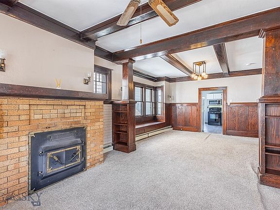 A large porch is the focus of the entry into this craftsman cottage with original woodwork preserved. The entry into the house has laminate flooring. Move into the living and dining rooms with coffered ceilings and original woodwork. The dining room has a long window seat and beneath the carpeting are original hardwood floors. The fireplace has been sealed off. Two large bedrooms with hardwood floors and "jack and jill" bath make main floor living easy. The kitchen has painted cabinets, rolling dishwasher and new refridgerator. From the kitchen is an enclosed back porch and heated mudroom take you to a large deck with stairs to the yard. The basement is finisned with 2 bonus rooms, family room and 3/4 bath. The house is in a stable neighborhood an easy walk to the Montana Tech.
