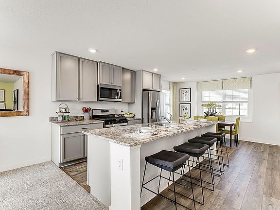 ** Ask how you can receive a 5.50% FHA/VA or a 5.99% Conventional 30-year fixed rate PLUS an additional $15,000 in incentives on this home. ** Completed New Construction Home! If you're looking for a bright, sun filled home, then this Caledonia end unit is for you! You'll love the light from the windows on three walls of the home! It has 3 bedrooms & laundry upstairs including a primary suite with walk-in closet and 3/4 bath. Main level living includes the kitchen with an expansive quartz topped island, stainless vented microwave hood and gas range, open living area with an electric fireplace, designated dining space and a large deck for outdoor enjoyment. Finished lower flex room is perfect for guests, home office, or fitness. Smart home package, private Dog Park, playground, and a professionally managed HOA. Close to every amenity you can think of from shopping to golf.