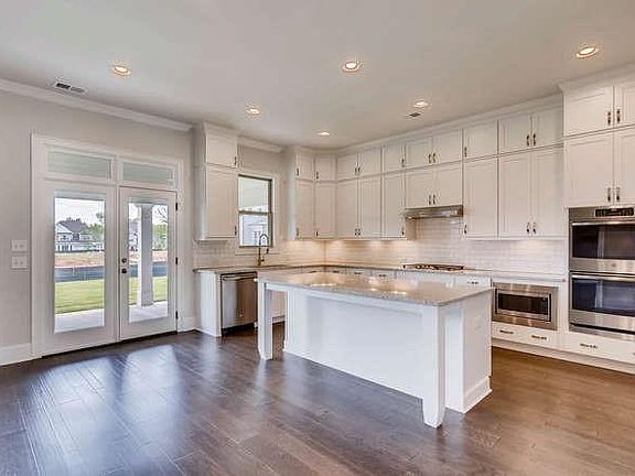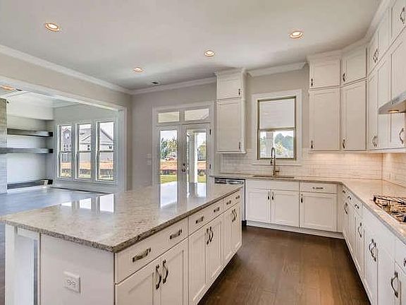 - Kitchen Features: Eat-in Kitchen, View to Family Room, Stone Counters, Kitchen Island, Cabinets White