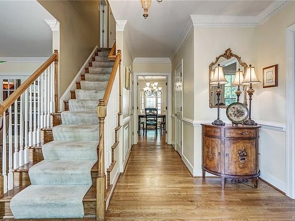 Nested on a beautifully landscaped lot, this brick front traditional is ready for one lucky buyer to add their personal flair! The well designed layout features a flowing first floor with rooms that can be divided by glass pocket or French doors when privacy is desired. The foyer is accented by a front staircase and formal rooms with gorgeous detailed moldings on either side. Across the rear of the home, the spacious kitchen with center island opens to both the family room and vaulted sunroom. A tucked away second staircase offers another access point to the bonus room or bedroom over the garage, as well as the entire second floor. The master suite includes two walk-in closets, one of which has hidden access. A finished third floor makes for the perfect guest or teen bedroom, playroom, hobby space - the options are endless. If you love to garden and escape outdoors, this backyard is a true sanctuary at the end of the day. Enjoy the option to join the Church Run pool and tennis club or not, as your needs change through the years. The location could not be more perfect with easy access to all points around RVA, shopping, dining, and well regarded schools. Make this a must see!