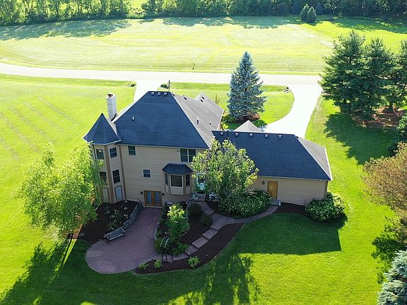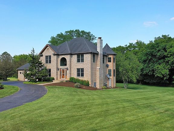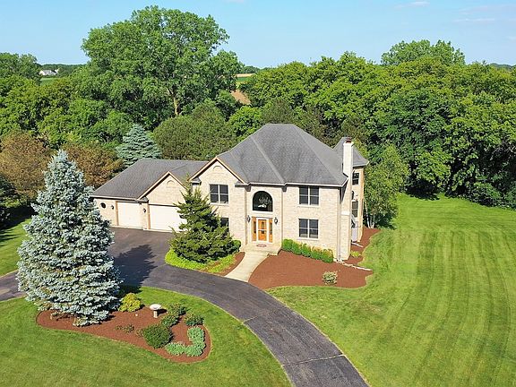 Calling all Nature Lovers!!! Relax on your stamped concrete patio overlooking a gorgeous tree lined back yard with beautiful landscaping. Over 4,000 Livable SF in this Custom Built 2 Story home on 1.6 Acres in a Quiet Country Neighborhood yet close to the Tollway and Route 20. Great Features of this home include the Circular Driveway, 3 1/2 Car Heated Garage, Sprinkler System ~ 2 Story Foyer ~ Main Floor Den with Hardwood Floors and French Doors ~ Living Room has a Floor to Ceiling Brick Gas Log Fireplace ~ Kitchen has Built in Oven and Microwave, Cook top, Pantry, Under Cabinet Lighting and Granite Counter tops ~ Kitchen Eating Area is Bayed with an Abundance of Windows and Octagon Ceiling ~ Formal Dining Room has a Double Tray Ceiling and Bayed Window ~ Full Bath on the Main Level (You Could Turn the Den into a Bedroom and have a Great In-Law Arrangement on the Main Level). The Owners Suite has a Tray Ceiling with Built in Speakers (Wall Mounted TV Stays), Walk in Closet with Custom Shelving ~ Luxurious Master Bath with Octagon Ceiling, Step Up Jetted Tub, Double Sinks and Separate Shower ~ Bedrooms 2 and 3 have been freshly painted ~ 2nd Floor Laundry ~ AWESOME Finished Walk Out Basement with Knotty Pine Walls!! Basement has a Full Bath with Walk in Shower, 4th Bedroom with Glass Pocket Doors leading to a 2nd Kitchen Area with bayed area for a table. Great for those who like to entertain, you an grill on the patio and have dinner and a fire in the basement kitchen and Rec area!!! This home has so much to offer plus Riley Consolidated School District and Marengo High School. Copies of the Rules and Regulations for the Subdivision is Attached to this Listing.