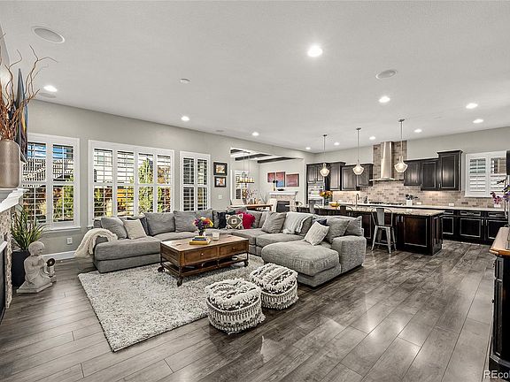 Downstairs, the fully finished basement offers an entertainer’s paradise with a bar, expansive rec room with fireplace, three additional large bedrooms, gym, and plenty of storage. With over $200k in custom designer upgrades, every inch of this home exudes sophistication and practicality, from luxury vinyl flooring to the strategic layout. The award-winning Stepping Stone neighborhood features access to trails and open space, multiple parks and a community pool and clubhouse! With easy access to I-25, and a multi-purpose ADU/mother-in-law suite, this is an extraordinary home and rare find! Schedule your showing today and experience the perfect blend of luxury and functionality!