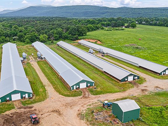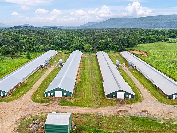 This fully operational poultry farm offers exceptional income potential and scenic beauty. Featuring (4) 43’x500’ broiler houses with Choretime controls, waterers, and feed lines, this farm is designed for efficiency and ease of operation. Additional improvements include a 40’x105’ litter shed, 30’x20’ water room with (4) 5,100-gallon water tanks, two Deutz generators, and (4) 1,000-gallon propane tanks ensuring seamless production. Stocked pond for fishing. The surrounding lush hay meadows planted in rye and mixed grasses add value and versatility to the property. Enjoy breathtaking views of Mt. Magazine while benefiting from an average annual income of approximately $250,000.