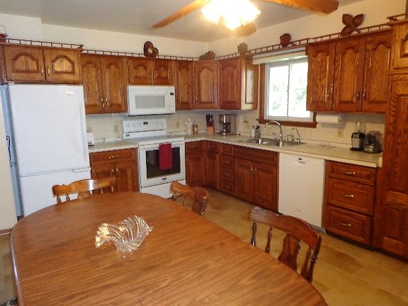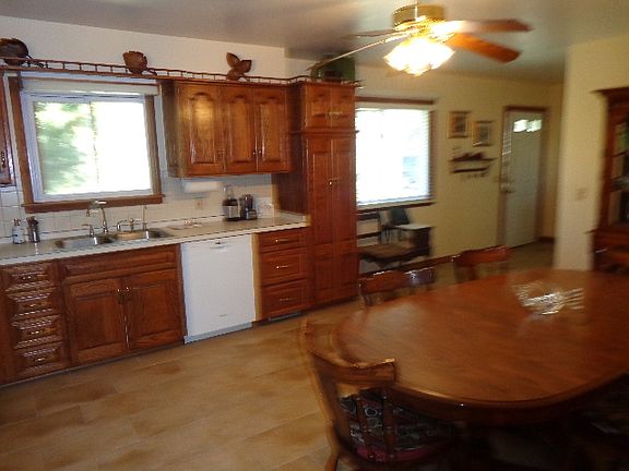 This 3 bedroom Ranch home is move in ready condition. Home has had many updates including a new roof (house & garage), paint, flooring, faucets furnace w/air purifier system, water softner, purifier and more. Immaculate home, large spacious kitchen w/lots of storage space, master bedroom has a 1/2 bath with access from bedroom and exterior side door. There is a living room with east and south windows for air flow, Full basement w/additional bedroom and family room area, detached 2 car+ garage with tons of storage, circle drive and an abundance of apple trees, blackberry bushes and morel mushrooms. Lots of space for trail riding and hiking and large garden. Great place to raise a family.