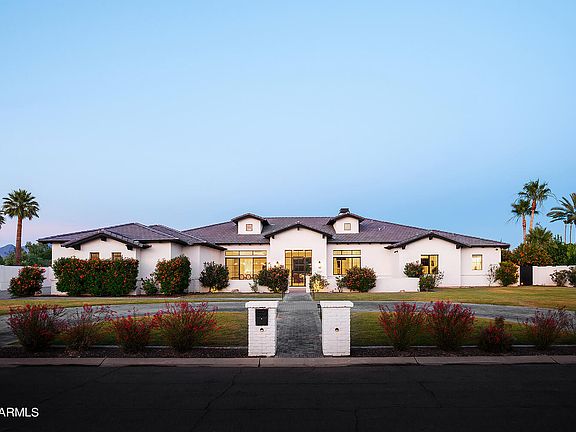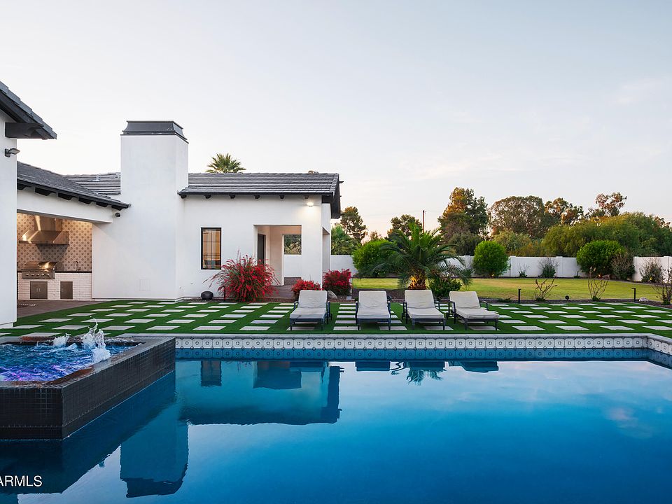 This one checks all the boxes; functional single level residence showcasing an enchanting blend of modern design and organic aesthetics. No expense was spared in its construction, resulting in a home adorned with high-end finishes and boasting impeccable craftsmanship throughout. You'll be greeted by an awe-inspiring foyer with soaring ceilings and unmatched design features. Floor-to-ceiling windows and sliding glass doors allow an abundance of natural light to cascade into the living spaces. The home's palette is carefully curated, embracing a soothing organic color scheme that enhances the sense of tranquility. The split floor plan offers both privacy and positive balance, with the main living areas thoughtfully separated from the luxurious bedrooms and private retreats. See MORE. The spacious and open concept kitchen is a culinary enthusiast's dream, featuring top-of-the-line appliances, sleek countertops, and high-end cabinetry, effortlessly flowing into the elegant dining area and inviting main living room. The lavish primary suite conveniently connects to the Laundry, all other remaining bedrooms are equally impressive and spacious, each boasting their own en-suite bathroom, and centered around flex space/media room, ensuring utmost comfort for family and guests. If needed, the stunning home office could be utilized as a 5th bedroom. The resort style backyard offers an abundance of green space, mountain views, sparkling pool and spa, a covered patio with a built-in barbecue, and provides ample space for gatherings. This gorgeous luxury home truly exemplifies the pinnacle of refined living. Just minutes from Old Town Scottsdale and the Kierland Commons, the location couldn't be any more perfect. Easy to preview, may not last long.