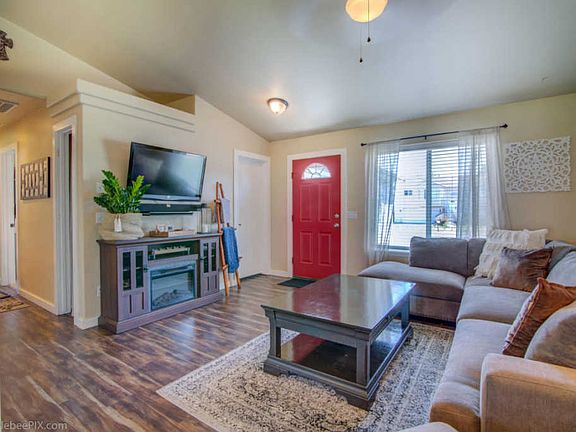 Nicely updated one level home in Hayden. Enjoy 2 bedrooms, 1 bathrooms, 804 square feet, vaulted ceilings, Spacious kitchen with gas range, Gas Furnace and Central A/C with WI-FI thermostat. Updates include flooring, paint and Central A/C. Outside enjoy the fenced yard, covered back porch, storage shed with power, garden and RV parking. No HOA or CC&R's!!!