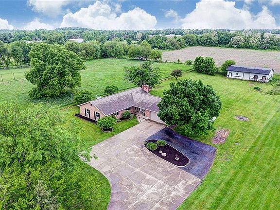 Imagine sitting out back watching the sun set over your property - not a sound in the world but tweeting birds. That's what's in store night after night for the new owners of this nearly 10 acre property. Down a long, private driveway sits this large brick ranch with 4 spacious bedrooms, each with it's own walk in closet and ceiling fan. You will love the welcoming covered front porch and large entry area. There is a separate living room and a warm family room with wood burning fireplace, perfect for a new buck stove insert. The kitchen opens to the family room & dining area and has a large peninsula with bar stool seating. Off the back of the house is a screened in porch, which leads out to the rear yard, barn and chicken coop. The barn is 30x56 and has concrete floors, 3 stalls, new hydrant, a loft, insulated office, electrical service & heat. Updates to house include roof, gutters, soffits, windows, pressure tank & well pump, paint, carpeting, garage door & more. Just unpack & relax