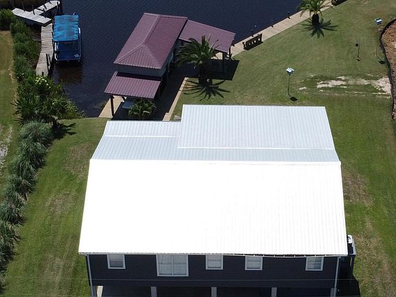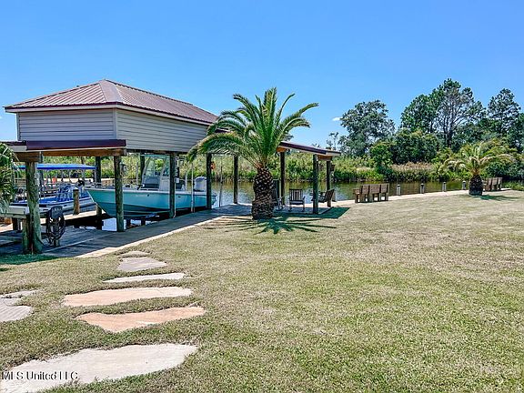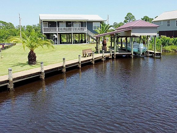 This lovely and move in ready home is in pristine condition and sits on natural Twin Bayou, with unobstructed water and marsh views. It is just seconds to Bayou LaCroix, the Jourdan River and the Bay. You can travel by boat to the Municipal Harbor, shopping, dining and entertainment. This home boast 4 bedrooms, new quartz countertops, beautiful bamboo flooring throughout and an open floorplan, perfect for entertaining. The home and grounds have been lovingly maintained. You have over 100 ft of bulkhead with a boathouse and lift. It has a fiberglass enclosed cargo lift. There is plenty of room underneath for entertaining with a large storage area/workshop/garage. The owner installed a new 26 gage Galvalume metal roof in 2022. The Energy efficient siding is .050 gage Double 6 insulated backed vinyl siding manufactured by ProVia. There is insulation in the walls, attic and flooring making for a solid and energy efficient home.