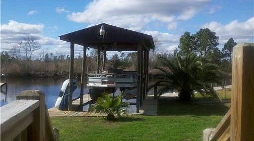 Beautiful waterfront home with fantastic view of Twin Bayou and just min. to Jordan River, bulk headed and boat slip, Boathouse & Boat Lift. This 4br.ho. is in immaculate condition- open floor plan-high ceilings, bamboo flooring, large covered Deckoverlooking Bayou and Marsh. Must see!