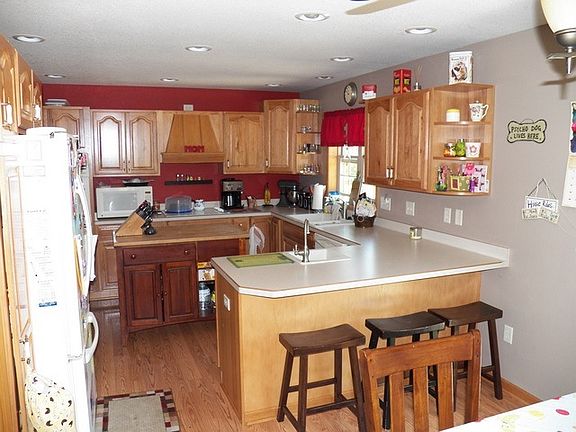 Newer 1 1/2 story home on over a half acre lot! Spacious great room has a gas FP and wood laminate floors! Nice kitchen / dinette w/birch cabinets, snack bar, double oven, wood laminate floors and patio doors off dinette. Full baths have double vanities. Main floor master BR has WIC and private BA with SOT, CT floors and whirlpool! Maintenance free exterior...vinyl, brick & aluminum trim. Six panel doors. Lots of added lighting. 2 large bedrooms upstairs. Central vac. 80 gallon water heater.