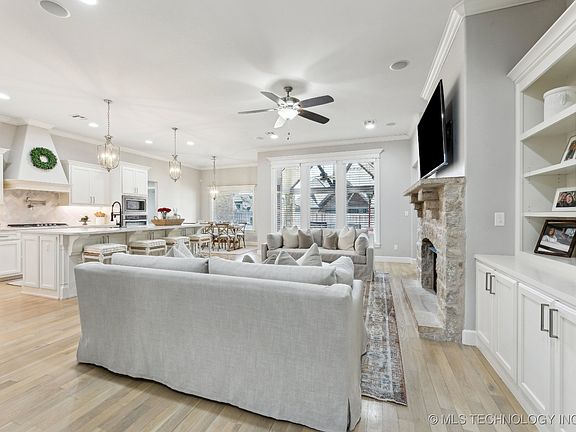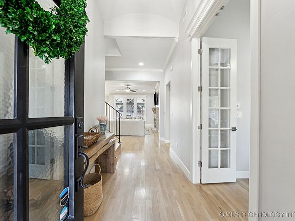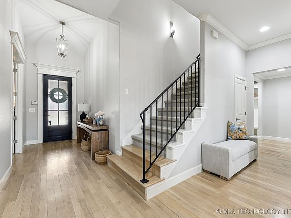 Beautiful Executive Homes Transitional built in 2019 sits on a corner lot. This home has 10 ft ceilings, luxurious finishes and beautiful lighting. Quartz counter tops, white oak hardwood floors, crown molding, surround sound, sculpted carpet, and a fully fenced backyard. Spray Foam Insulation, 16 SEER AC, 95% Efficient Furnace, & More! Walking trail and park with easy access to Creek Turnpike and Hwy 75. Agent/Owner