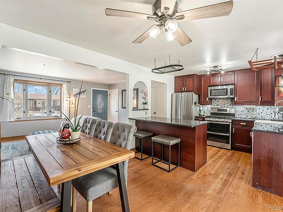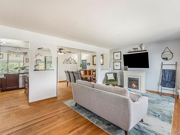 Beautifully updated home in the highly desirable Green Mountain area of Lakewood, close to many parks, lakes and trails! This home has full egress windows in the basement rooms, making it a true 5 bedroom home with an additional living area and office/den in the basement. Stainless steel appliances with a convection, double oven and plenty of storage in the kitchen. Smart irrigation system in the front with recent professional xeriscaping features. Natural light flows all throughout this home, solar panels that receive full sun, a tankless water heater and a smart thermostat, make this home even more energy efficient. All Bedrooms have ceiling fans. Mature apple, peach and pear trees along with a lovely lilac tree, create a beautiful, serine environment. This home is on a cul-de-sac and offers a mostly private backyard with an attached 3-season sunroom where you can enjoy nature all year long. Main sewer line was just replaced/repaired, Brand new shower in the primary bathroom, all new LVP in the basement with original hardwoods on the main level. Spacious 2 car garage with additional off-street parking for Camper, RV or Boat, just adjacent to driveway. Kendrick Lakes elementary is just 1.5 miles away, Just a 2 mile trek for great hiking/biking at Hayden park and just around the corner you'll find Jim Hoida Memorial Park. (*Sunroom not included in sq ft). Multiple offers received as of 4/29, Please have all offers in by 8pm on 4/30.