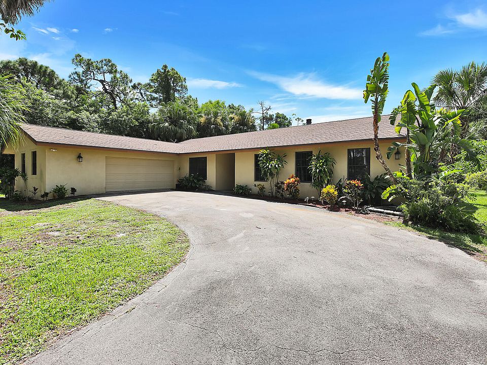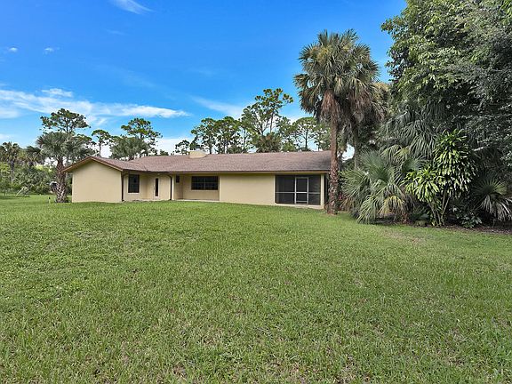 Spacious 4 bedroom, 2.5 bathroom ranch style home on 1.25 acres of land. Indoor features include, a cozy living room with a stone wood burning fireplace, tile flooring throughout most of the living areas, carpet in the bedrooms, and an updated kitchen open to the family room making it perfect for entertaining. The outdoor area is fantastic with a large screened and covered patio area, custom storage shed, and plenty of space to build your dream pool. Large 2.5 car garage with plenty of parking for all the toys! Located off of a paved road, close to 441 extension, Target, Publix, and Royal Palm Beach Blvd.