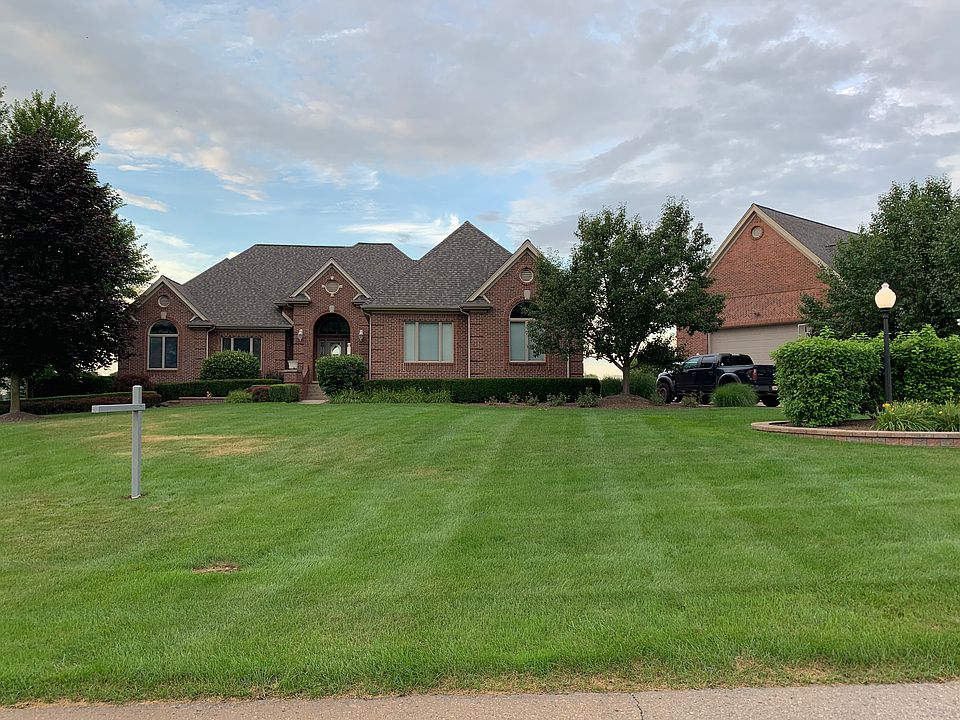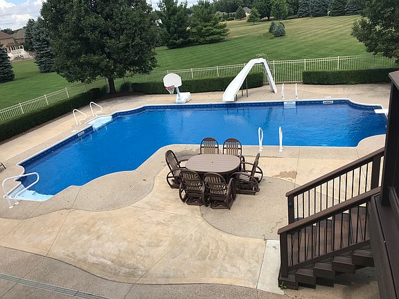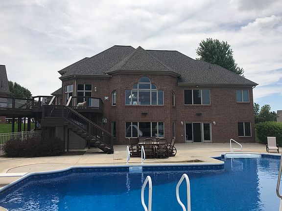 Beautiful 2,900 sq ft. 3 bedroom maintenance free brick Ranch, open floor plan with 12' ceilings, wood floors, oak crown molding and oak solid doors throughout. A newly remolded kitchen with granite, sub zero refrigerator, wolf appliances with a double oven. A large master bedroom with two walk in closets and a jacuzzi tub. Extra large bonus room. A finished walk out basement with an additional 2 bedrooms, bathroom, private office and a wet bar. A 48' by 20 ' L shaped in ground pool. Two tiered tek wood deck with glass railing. Four car detached garage, finished, heated, finish loft, with 14' ceilings and a 12' X 16' garage door. A 2.5 car attached garage, tiled floor and heated. New roof on all structures in 2016 with 50 year shingles.