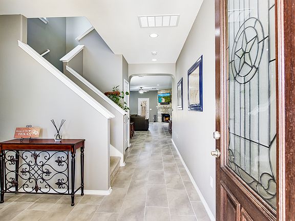 Built in 2014, this home has been impeccably-kept by original owners and features two masters - one up and one down plus two additional bedrooms and 3.5 bathrooms. Plenty of space for a growing family and plenty of space for media room/game room/hobby room etc. Loaded with upgrades throughout including stainless steel appliances, 42" dark wood cabinets, and hard tile in all lower-level main areas. The light gray color palette throughout is soft and soothing! Landscaped yard with flower beds and nice back porch round out this two story home.