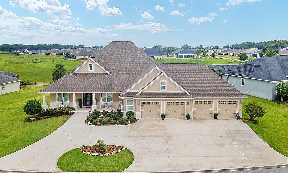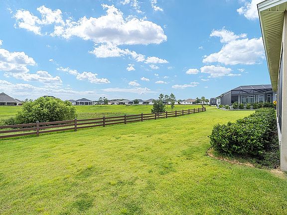 Welcome to this premier home in the family neighborhood of Oxford Oaks! With a HUGE 4 car garage and an amazing view, this home has all the "Wow Factor." A large circular drive and a lovely front porch greets you as you arrive. Inside, you will notice luxurious tile flooring and high ceilings. The kitchen has tall white cabinets and classy quartz countertops. Upgraded appliances include a double wall oven, electric cook top, and refrigerator with beverage drawer. A massive walk-in pantry features another refrigerator, wine cooler and tons of storage space. The open floor plan features a designated dining area and a living room with French Doors that lead to the expansive lanai. A breathtaking view awaits you, with room to build a pool! The primary suite shares this view and features a large bathroom with a vanity, roman shower and two custom walk-in closets. This split floorplan features a guest wing with 3 guest bedrooms, all with walk in closets. The guest bathroom has a tiled shower/tub combo with glass doors. In addition, there is an oversized bonus room upstairs! A half bath and laundry room are in a separate hall that leads to the impressive garage. This home is in the highly sought after, Oxford Oaks, family community that is right down the road from shopping and dining on 466-A, the Villages Charter School K-8 campus, not to mention a very close commute to The Villages.