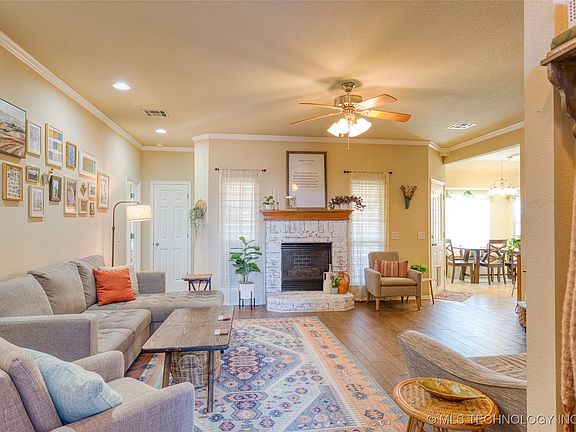 This one story home features a split floorplan with 3 bedrooms and two full baths designed for both functionality and style. Gorgeous tile floors flow from the main living area into the laundry room and kitchen adding warmth and character, while a cozy gas log fireplace anchors the living room. The kitchen is equipped with stainless steel appliances and over-sized sink with granite countertops providing ample counter space plus Breakfast nook with bay window adding lots of natural light. The Primary suite is oversized and features a lovely tray ceiling, while the primary bathroom offers a sperate shower, large soaking whirlpool tub, and double sinks. 3 linen closets provide excellent storage as do the walk-in closets in all bedrooms. Enjoy hours of relaxation on the covered back patio overlooking large backyard. Perfect for grilling, unwinding and for gatherings. Roof is only 3 years old, HVAC 6 years old. Centrally located, this home has quick access to shopping, dining, and highway access which makes commuting to surrounding area a breeze.