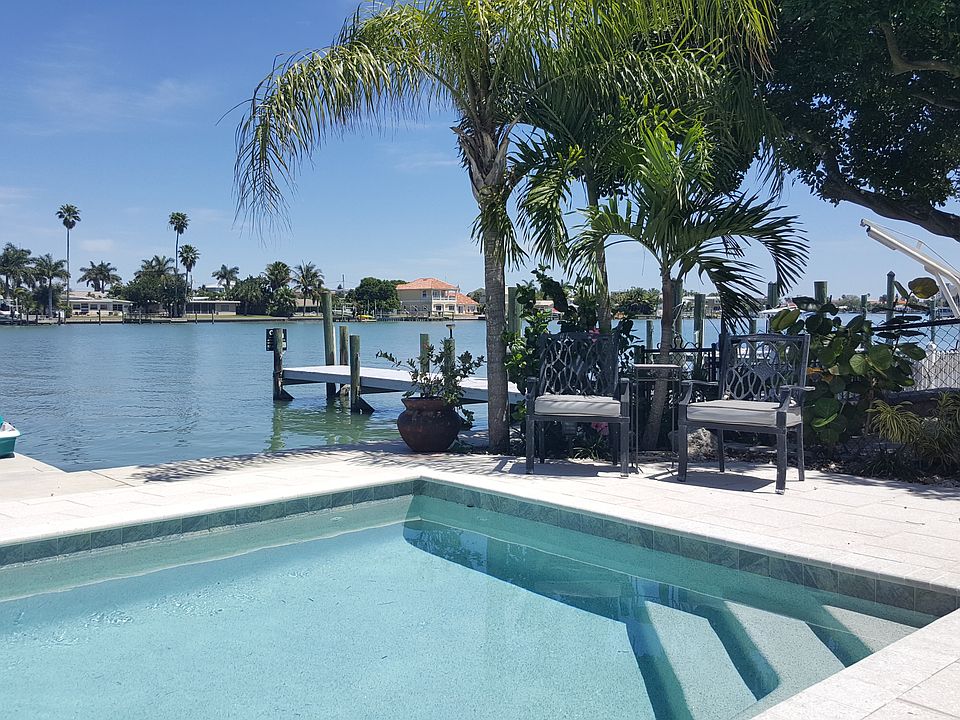Remodeled 3 story home with a new pool and patio area! Extensive remodeling in and out on this great water home. Extra 1000 sq ft finished on main floor. Wide canal, new boat lift, bathroom updates, large open kitchen design, new tile and wood floors and much more!