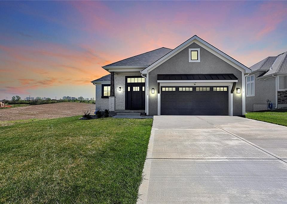 Motivated Seller! $2K Agent Bonus & $2k Buyer Incentive!! Beautiful, Move In Ready!! Situated in the desireable maintenance free Villas at Prairie Field, this less than 2 year old Manor floor plan by Bob Sanders offers a perfect blend of luxury, comfort, and style. Located just outside Liberty city limits with a Kearney address, this home consists of 2,333 sq ft of living space, featuring 3 bedrooms & 3 baths. The home is constructed with additional insulation for energy and sound efficiency. You'll love the popped grain of the hardwood floors and the open floor plan which create a backdrop to the home's upgraded finishes throughout. You'll find examples of the upgrades in the primary suite with the dramatic vaulted ceiling, spa like ensuite, and the sizeable walk in closet connecting to the laundry room.