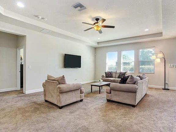 This owner is ready to SELL!! Check out this Beautiful & Spacious home in the amenity filled Channing Park community! Enjoy all of the highly rated Fishhawk area schools, youth sports & trails just minutes from your door! This home has 4 bedrooms, a separate Office/Den, and a HUGE 2nd floor BONUS ROOM! The large formal dining room is perfect for hosting dinner with family & friends. The open floorplan make it perfect for everyday living too. The kitchen has a double oven gas range, walk in pantry, lots of granite topped work space, large island and even the perfect spot for your breakfast table! The master suite has plenty of room for your king size bed and has a great view of the private backyard! The master bath has double sinks, a garden tub that will be perfect for soaking after a long day & a separate shower too! Bedrooms 2, 3 & 4 are all located on the first floor as well. Don't miss the 2nd floor with it's 23'x18' Bonus Room and full bathroom! The possibilities are endless for this room! The backyard is nice & private with NO BACKYARD NEIGHBORS! This owner didn't miss the important details like gutters and overhead storage in the garage. All of this in a great neighborhood with community pool, splash pad, playground, basketball court, soccer field & dog park too! Hometown amenities while staying minutes away from MacDill, the beaches, downtown Tampa & Orlando.