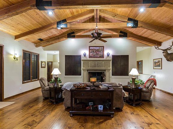 This architecturally stunning property represents the best of Prescott living and entertaining. Enjoy the amazing views from the courtyard, accessible through spectacular doors, creating the desire to experience unsurpassed outdoor living. Sparing no detail, this modern classic ranch offers truly rare, rustic features, such as the recycled railroad trestles that once crossed the Great Salt Lakes, to now be re-purposed into this home as ceiling timber joists throughout. The antique planked wood floors are milled from New England barns and churches. The gourmet kitchen's modern highlights include imported granite, a Wolf Range and Subzero Refrigerator, to name a few. The Master Suite offers tranquil sitting areas with fireplace, soaking tub, snail shower, and walk-in closet.