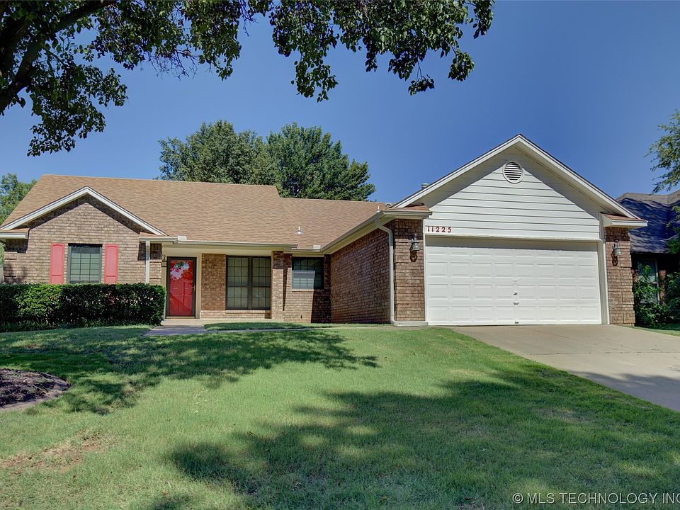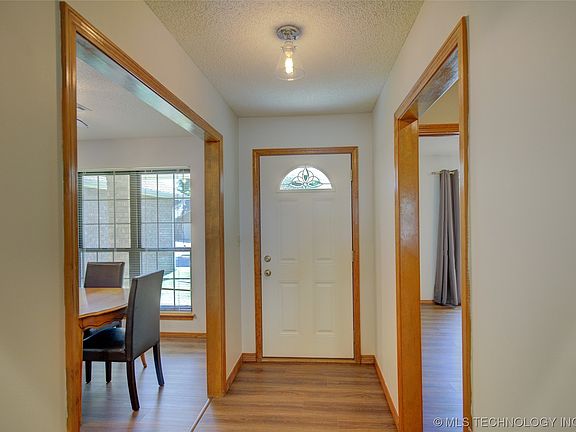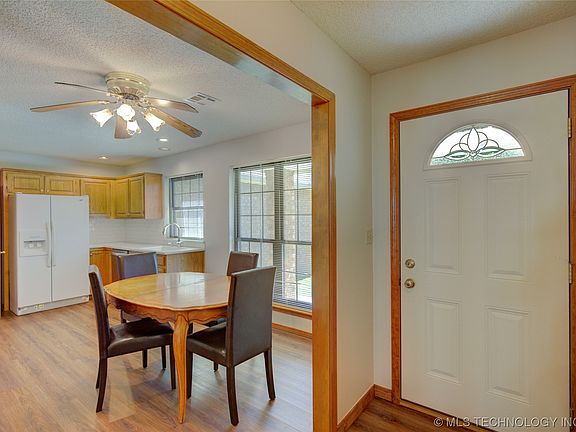Great home in North Bixby! Great cooking space in kitchen with nice size dining area. Large living room has vaulted ceiling and fireplace. Oversized primary bedroom has walk-in closet and bathroom with a separate shower, tub, and toilet. Split floor plan offers 2 additional bedrooms. Large covered back patio is great for entertaining. Privacy fenced backyard with shed.