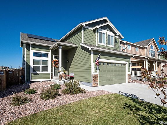 No showings till Saturday at noon. The open floor plan with vaulted ceilings greet you as you enter your new home. The openness flows to the dining area and into the kitchen with pantry. Look out to the landscaped backyard with sprinkler system included. No houses behind. Backs to middle school playgrounds and grassy areas. The master suite is upstairs along with 2 bedrooms with custom window seats! Two bedrooms and full bath down along with finish recreation room down make for lots of room. The garage has high ceilings and private 4x4 workshop or storage area. Here comes the big bonus of this home... The solar panels are owned and part of the home ownership! 14 Solar panels are producing 5.23 MW. The savings of $80-100 a month in your budget currently, can give you $20-25k more in buying power. Take that off your purchase price and this residence is a really great value! ** Wow! Hurry!