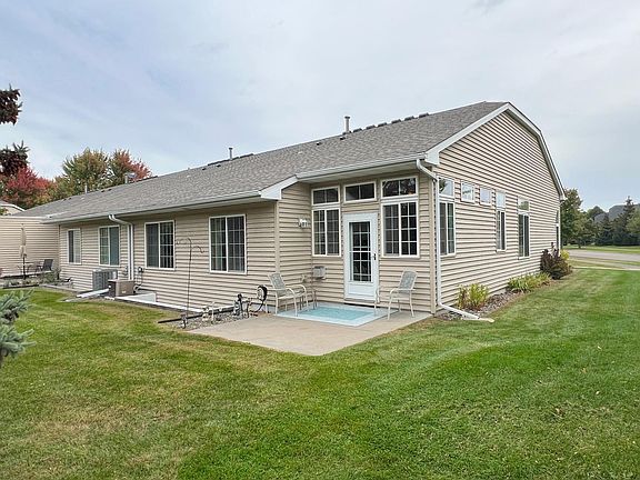 Single level living at its finest! End unit with privacy, a backyard patio with lush pine trees. This home features a wonderful bright Sun Room with a Fireplace for those perfect evenings. Open Kitchen with Granite counter tops and Tile backsplash. Large Primary Suite with expansive walk in closet and private Primary Bath. All living facilities on one level with a large laundry area, kitchen pantry. Lots of storage and room for expansion with a full basement ready to be customized to your preferences with Egress Windows. New Water Heater in 2023 and Water Softener was refurbished in 2024. This home has been meticulously maintained and loved by its current owner. Don't miss this opportunity.