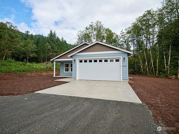 You can be the first owner of this Brand NEW charming as can be-one level home in the stunning Yale Valley! Privately located just around the corner from the Speelyai Boat launch, fantastic reservoirs & recreation. This light & bright home is perfect for year round living or makes for a perfect get away. Featuring an open-concept living/kitchen area w/island eat-bar. Spacious Primary suite with vaulted ceilings, glass door to covered patio, WI closet w/organizer & bath w/double sinks, soaking tub & shower. EV charging in finished garage. Enjoy all the seasons from your covered porch & back patio. High speed fiber internet is available! Cool opportunity w/brand new adjacent home (11244 LRR) also available. So many options! MUST SEE!