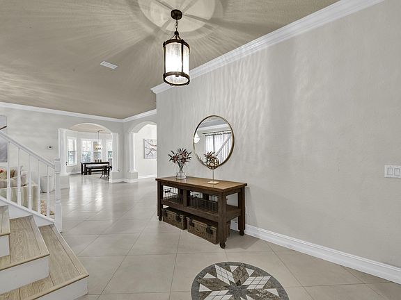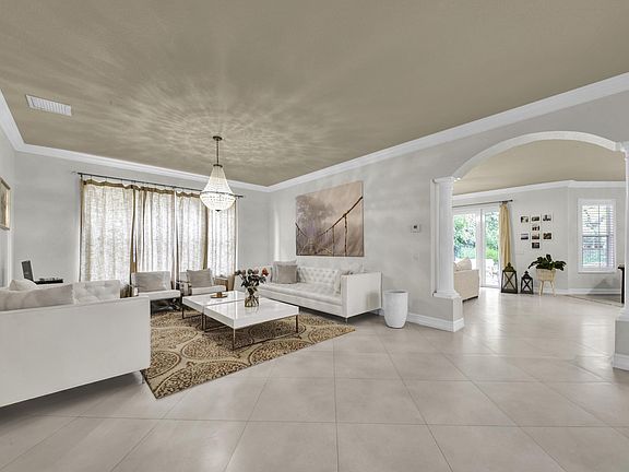Welcome home to an exceptional opportunity in the desirable community of Canyon Isles. This spacious 5 bedroom, plus loft, 4 bath home features a formal living room, dining room, family room and a covered patio. Chef's kitchen features new classic white cabinets, tiled backsplash, under cabinet lighting, center island, double oven, snack bar and breakfast area. Large master retreat with a coffered ceiling, custom his and hers closets, dual sinks, a soaking tub and a walk-in shower. Relax on the covered patio overlooking the private yard and tropical landscaping. Neutral tile laid on the diagonal, crown molding, decorative inlays and an abundance of natural light are just a few of the highlights in this home. Canyon Isles provides first class amenities that include a clubhouse, gathering room, children's activity room, fitness center, resort style pool, water play area, covered play area, tennis and basketball. Located close to shopping, dining, entertainment, "A" Rated schools, major highways and airports.