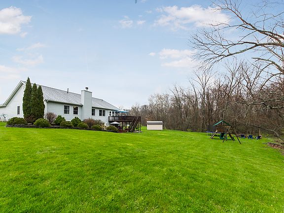Beautiful, private, and serene setting is perfect for this large 5 bedroom, 3 bath home. This home sits on close to an acre of land at the end of the street that includes large trees, a creek, and backs to fields. Sit from your large deck overlooking your nice yard and fire pit or enjoy the concrete patio space. Awesome open floor plan with 2 finished levels. 1st floor master, laundry, 4 seasons room and an office space 2 additional bedrooms on the main level. Stainless steel kitchen appliances. Brand new gas range installed 4/10, not showing in pictures will stay and new stainless sink to be installed. Walk out lower level has a massive living room and storage as well as 2 additional bedrooms and another full bath. New high efficiency furnace, roof approx. 4 years old. This home is move in ready
