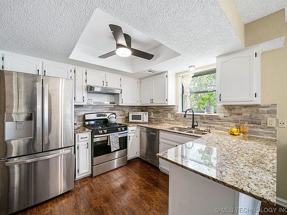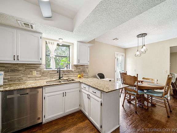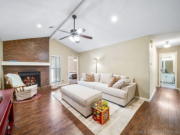 Very well maintained 4 bedroom, 2 full bath home in Jenks school district. This home features vaulted ceilings in living room w/ fireplace, kitchen/dining combo with a breakfast bar, new AC unit 2023 & new dishwasher. Spacious master bedroom w/ his & her closets.