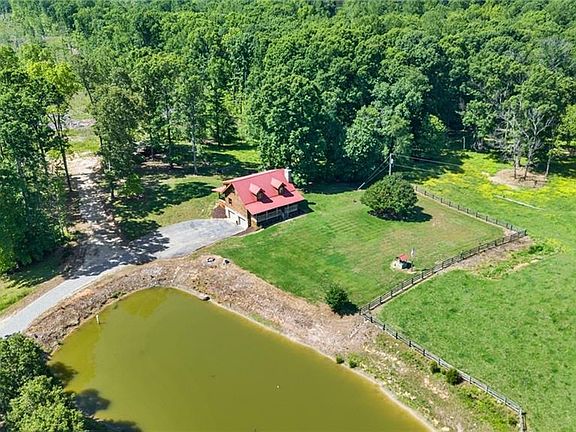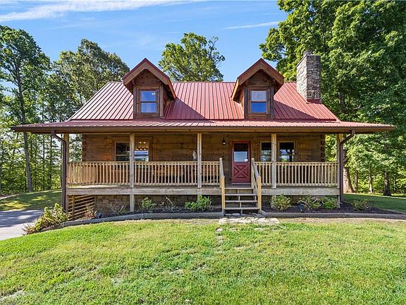 Immaculate & pristine log cabin with nicely stocked pond privately nestled on 2.8 acres of quiet country living! This newly updated home features two huge covered porches to enjoy the great outdoors and peaceful surroundings this lovely property offers. New Whirlpool appliances in the updated island kitchen with granite tops that opens nicely into the living room area that features a soaring gas log fireplace to enjoy on those cooler nights! The large primary suite is located on the main level and offers French Doors that lead out to the back deck and wired hot tub area and also features a beautiful master bath complete with a stunning hand laid tile shower, a gorgeous soaking tub, and dual vanities! Upstairs offers a large loft/bedroom as well as another large bedroom & full bath with a walk-in closet! (Septic permit is for 3 bedrooms). The awesome basement offers additional storage, workshop space, & 2 car Garage! This one has it all! If you want peace, quiet & solitude this is it!