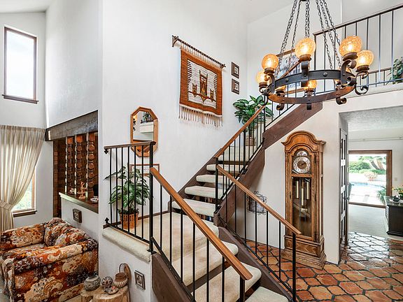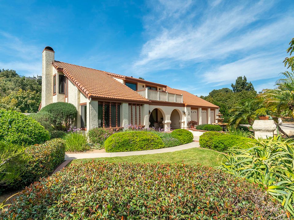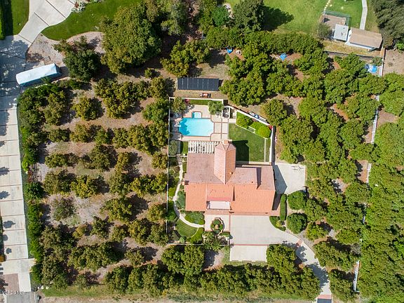 Exquisitely positioned in pastoral Santa Rosa Valley, this custom home is built to accommodate all of your family and entertainment desires. Arrive alongside a beautiful fountain and lush gardens. Enter into a towering two-story foyer with Saltillo tile flooring. Formal living/dining rms, eat-in kitchen w/ oversized island, downstairs bdrm, alluring step-down fireplace rm and separate family rm, w/ wet bar. Retreat to the master suite to unwind in the sitting area w/ vaulted beamed ceilings and fireplace. Resort-style outdoors. Relax by the solar-heated pool/spa, relish delicious BBQ dining on the patio, enjoy lawn games, stroll through the avocado grove, pick fruit, play basketball, or simply enjoy the views. This house sits amidst a mature income-producing avocado grove on a flat lot. Additional features - whole house automatic standby electric generator, dual pane windows, central vacuum, laundry chute, whole house fan, no HOA, newer septic tank 2015, pool re-plastered 2018, newer sinks/faucets in baths 2019 and a 3-car garage with additional room for a workshop. This very well-cared for home exudes true pride of ownership. Designed with superb attention to detail and impeccable craftsmanship throughout. Here's your chance to enjoy the SRV lifestyle!