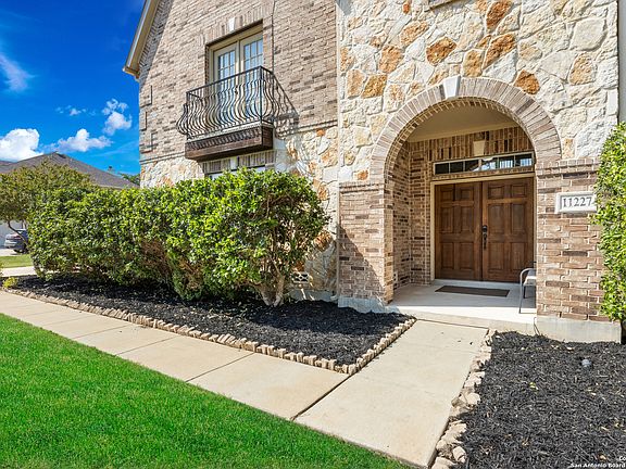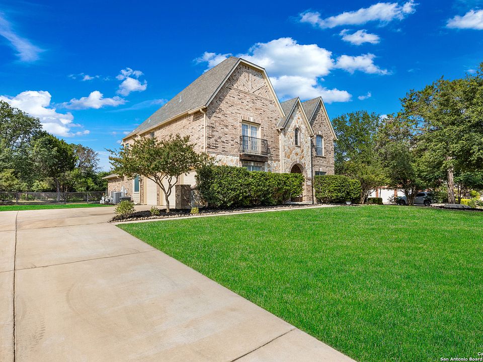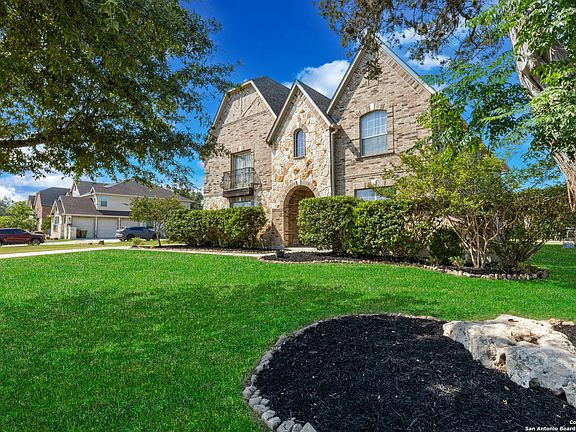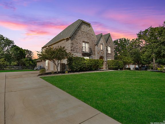 This exceptional home has it all, luxury, space, and lifestyle! Come see this stunning two-story home on a spacious 0.80-acre lot with an IN-GROUND HEATED POOL and attached JACUZZI by Keith Zars! Located in the desirable subdivision of Hearthstone in Helotes, this beautifully maintained property features outstanding curb appeal, 4-sided brick exterior and mature trees. Inside, you'll be welcomed by luxury porcelain tile and engineered hardwood flooring throughout the main level. The formal dining room leads to a cozy family room with a charming corner fireplace and open view of the chef's kitchen, that boasts a huge island, granite countertops, a stylish tile backsplash, white cabinetry, double oven, stainless-steel appliances, and a breakfast nook perfect for both everyday living and entertaining. In the main level you have the spacious primary suite with a large bathroom featuring a garden tub, standing shower, dual vanities, and an oversized walk-in closet. Also, conveniently located on the main floor are the office and laundry room. Upstairs, you'll find four additional bedrooms, two sharing a Jack-and-Jill bath, as well as a spacious game room, and a great media room with a surround sound system. Step outside to your private backyard oasis that features a pool with a water fountain, a large gazebo with an outdoor kitchen, playground set, sprinkler system, a shed and a 3 car garage, all this nested on almost an acre lot, perfect for year-round entertaining. It's a must see! This will not last long!