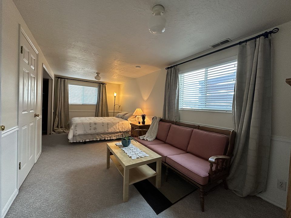 Spacious walk-out daylight basement with great natural light. Features a large bedroom with a queen-size bed, a comfortable family room, and a kitchenette for basic cooking. New good size refrigerator, good-size sink, microwave, coffee maker, and Instant Pot and basic utentils Back entry requires walking approximately 15 steps on a concrete slope. Close to many hiking trails, ski resorts, hospitals and shopping. 30 days to 12 months One bedroom, one bathroom, kitchenette Basement apartment is furnished No smoking or vaping No Pets Driveway parking Occupancy limited to two persons