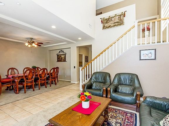 Bright and well kept home in Tiburon, one of the desirable gated community of Riverwalk. This home is located on a Cul-De-Sac and has 4 bedrooms and 3 bathrooms, 2,732 sq. ft. and has 3 car tandem garage. You enter the house through the formal living room and dining room area with high ceiling and recess lighting. There's a half bathroom and upgraded laundry room with lots of storage on the main level. The family room has an open floor plan and is equipped with surround sound system and a fireplace. Spacious Kitchen with granite counter tops, pantry, large center island and all new Samsung metallic stainless steel appliances . There is a large master suite with dual sink, separate tub and shower along with a large built-in walk in closet. Beautifully landscaped backyard with large covered patio and 2 fruit trees (Valencia oranges and kumquat (calamansi/asian lime) is perfect for summer BBQ and family gatherings. Noritz tankless water heater, Artificial turf on the front lawn, environmental friendly Combi blinds throughout the whole house has been recently installed. HOA amenities include pool, park, kids playground, basketball court and walking trails. With easy access to the 91 freeway, this community is conveniently located near the La Sierra university, schools, dog park and shopping. A must see!