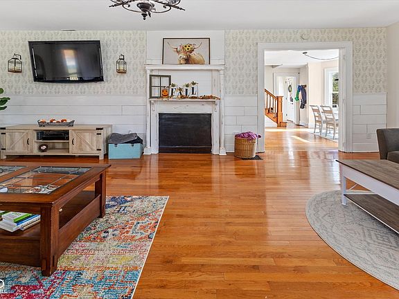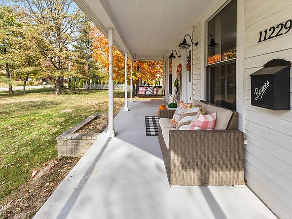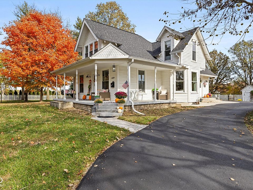 This charming 1905 updated farmhouse is set on nearly 3 acres, combining rustic charm with modern updates. The exterior features classic farmhouse elements including a gorgeous gated entrance, newly poured & sealed circular driveway, partial wrap around front porch with a built in flower bed and jaw dropping perennials throughout the yard. Inside you will be greeted to a spacious, light-filled layout with original hardwood floors and large windows that bring the outdoors in. The wood staircase is a stunning centerpiece that reflects this home's historic charm and nostalgia. The updated kitchen is a highlight, equipped with modern S/S appliances, gorgeous cabinetry, and a farmhouse sink blending new with the vintage appeal we all love. The living area is bright and spacious enough for family gatherings or quiet relaxation. Bedrooms are generously sized and still maintain their charming architectural details, and the bathrooms have been renovated beautifully. Outside you'll find a silo that adds a unique character to the property, alongside the chicken coop, a large garage with loft and a workshop as well. The outdoor patio of this farmhouse is a picturesque space that overlooks your expansive yard with panoramic views where you can enjoy the sights and sounds this property has to offer. So many updates worth mentioning but not limited to brand new roofs on the house, garage including new gutters & ice guard, milk house and workshop / chicken coop, professional landscaping, whole house water filtration system, new pressure tank for well pump as well as foundation repair and waterproofing of the basement; please see all updates & improvements attached to this listing as it will be more detailed. This home is a must see. Schedule your showing today.