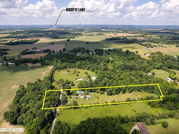 Welcome to your dream home near Buckeye Lake! This stunning retreat sits on just over 6 acres of countryside and includes 3 outbuildings. There are so many options for entertaining, choose from the back deck and firepit area to the front deck, or great room with 16' soaring ceilings and beautiful wood work. Some updates include a new custom walk-in shower, ADT security system, freshly painted rooms and exterior doors, Samsung smart refrigerator, google nest doorbell, dishwasher, 84'' great room fan, 330' fenced dog yard with access to inside kennel, turf dog run area, professional landscaping, exterior power washing, and gutter cleaning. Live worry free with a Generac whole home generator and newer water softener system. Don't miss this unique opportunity to own your slice of paradise!