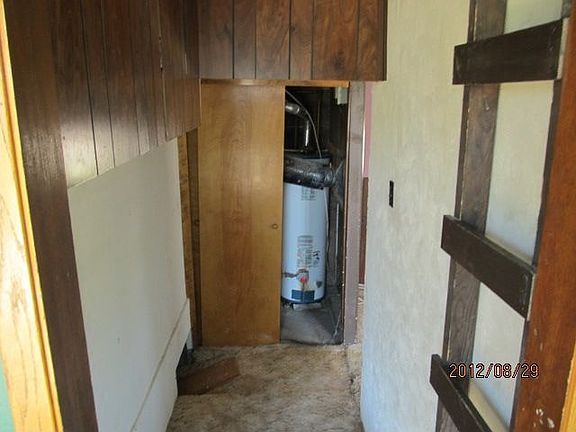 Exterior Features:Wood Ranch light read with white trim. Siding is in fair shape. Windows are intact. Soffits and he eaves need some work foundation is cemented for lab looks to be in good shape. Roof is in fair shape. In the back of the house the central air is present. Two-car garage and back, good size yard.Interior Features:Living room is good size hardwood floors walls are in good shape. Kitchen cabinets are in good shape sink is intact. First bedroom walls are paneled floor has light beige carpet. Second bedroom walls are in good shape floor has light beige carpet. Third bedroom walls are in good shape painting gray carpet light tan. Third bedroom walls are in good shape hardwood floor. Bathroom toilet, sink and Tub is intact floor is linoleum. Mechanics furnace and hot water tank are present condition is unknown.