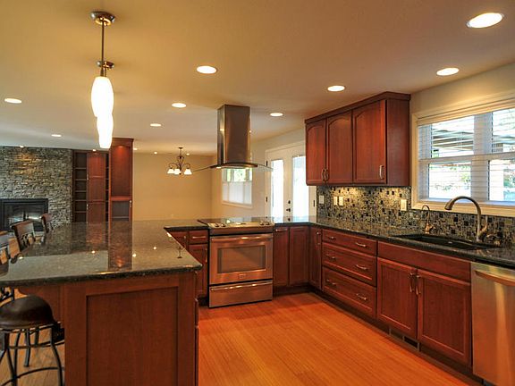Quality Upgrades Through-out! Nothing to do but move into this 3 bedroom, 2 bath rambler with a gorgeous kitchen and large open living areas. The large kitchen with eating bar features cherry cabinets, granite counters, stainless steel appliances with convection oven and walk in pantry. Cherry built-ins in the living area, bamboo flooring and tile through-out. Both baths have double sinks, granite counters, heated floors and oversize tile walk in showers with double heads and benches. Access a huge separate garage in the back through a motorized gate with plenty of parking. Enjoy a spacious stamped concrete covered patio in a wonderful park like back yard with gazebo. So many upgrades, come see!