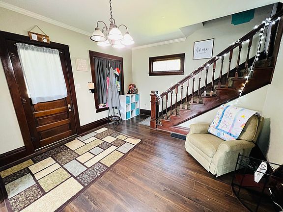 Nicely updated 3 bedroom, 1 bathroom home on a corner lot! Updates include freshly painted exterior in 2021, kitchen cabinets, flooring, barn doors, several windows and a new water heater in 2023. The front porch is the perfect area to relax after a long days work or enjoy your morning cup of coffee. Main floor bedroom and laundry. The spacious backyard is fenced in with a patio, fire-pit, shed and plenty of space to build your desired garage beyond the fence.